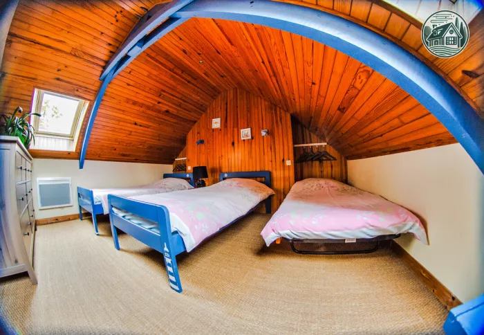 Ouessant a 4 couchages simples dont un lit gigogne, une salle de bain et toilettes privées.
